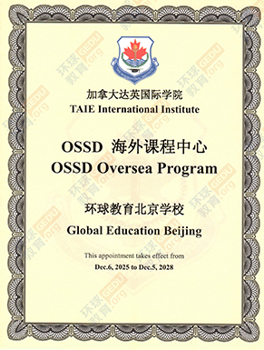 2. 2025年12月6日,环球教育北京学校与加拿大多伦多达英国际学院(TAIE International Institute)正式签署独家战略合作协议。双方共同宣布,环球教育北京学校成为加拿大安省OSSD高中文凭课程在北京地区的独家战略合作语培学校。这标志着一条权威、高效、专属的全球名校直升通道,已正式在北京开启。